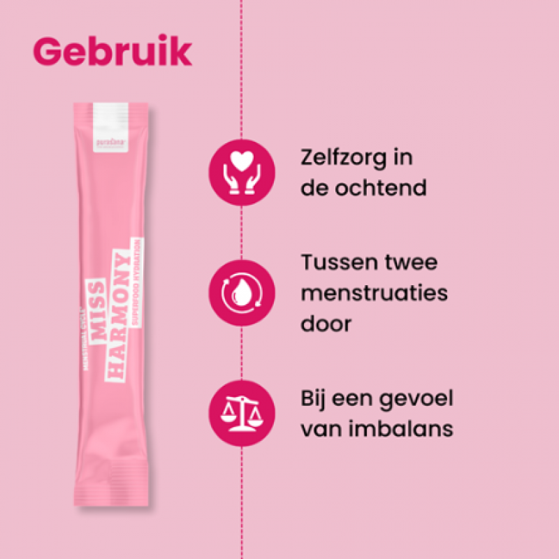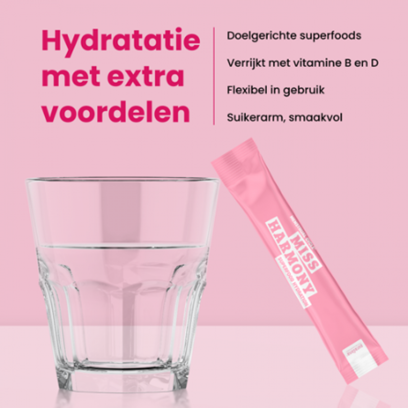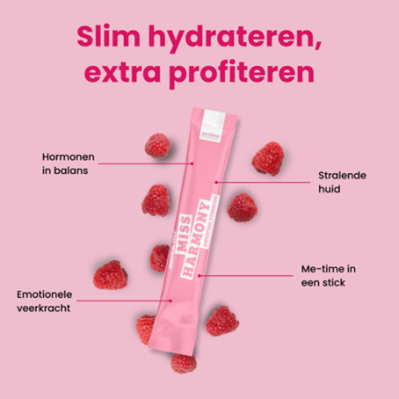 Miss Harmony draagt bij tot een cyclus in balans en een stralende huid dankzij adaptogenen, vitamines en plantenextracten. Ondersteun je hormonale veerkracht met dit superfood hydratatiepoeder. Makkelijke on-the-go sticks met heerlijke frambozensmaak!
